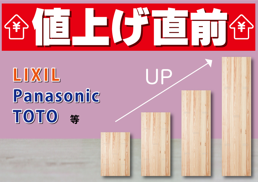 【値上げ直前】住宅設備メーカー続々値上げ予定!値上げ前の今がチャンス!これからさらに、上がるかもしれません。