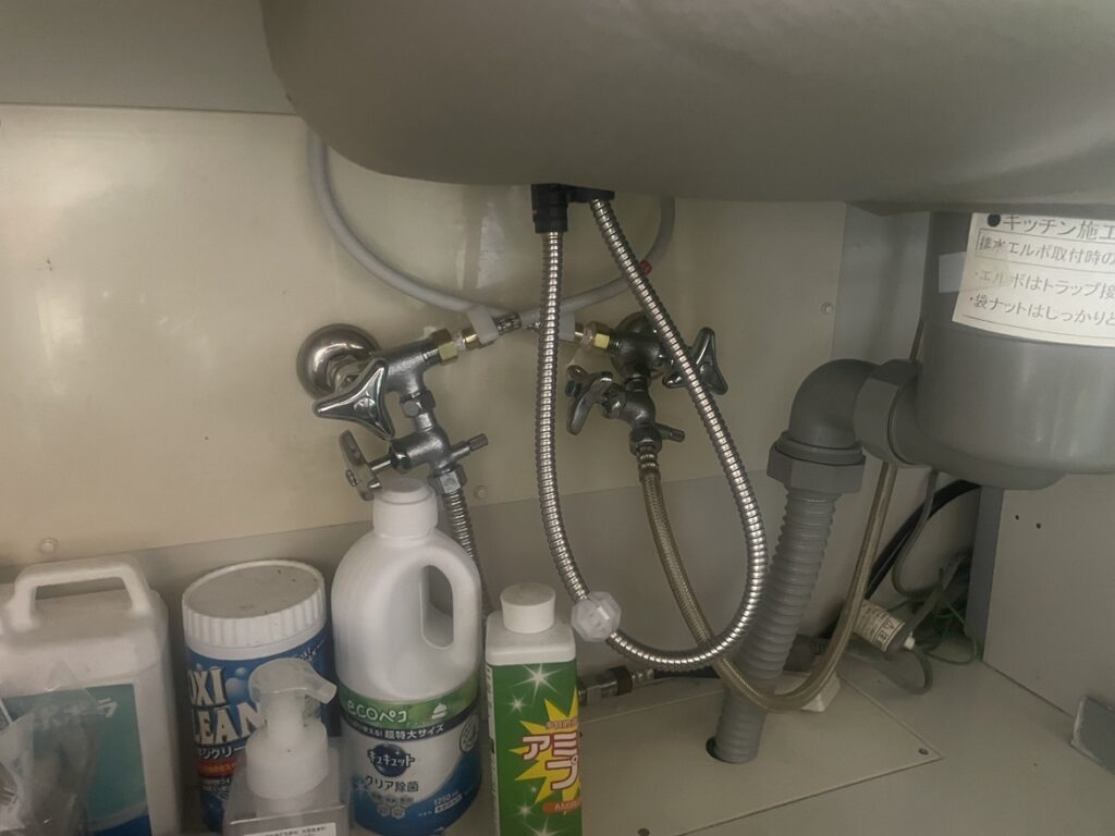 キッチンの下収納箇所へ水が漏れ落ちて