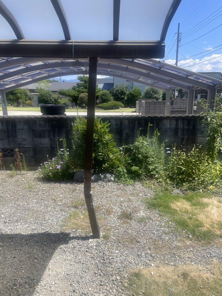 来客の方が車にて支柱へぶつけて 曲げてしまったので先方の保険を利用して工事をしたいと御電話いただきました。
