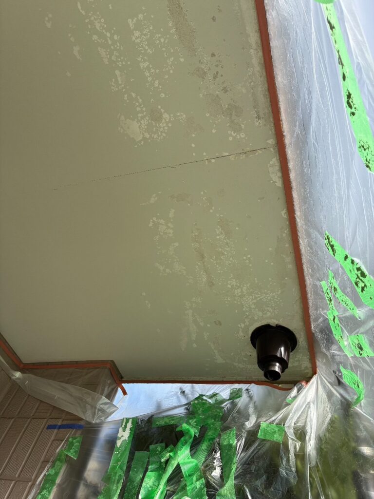 陸屋根へ屋根を架けてから軒天井を塗装し、