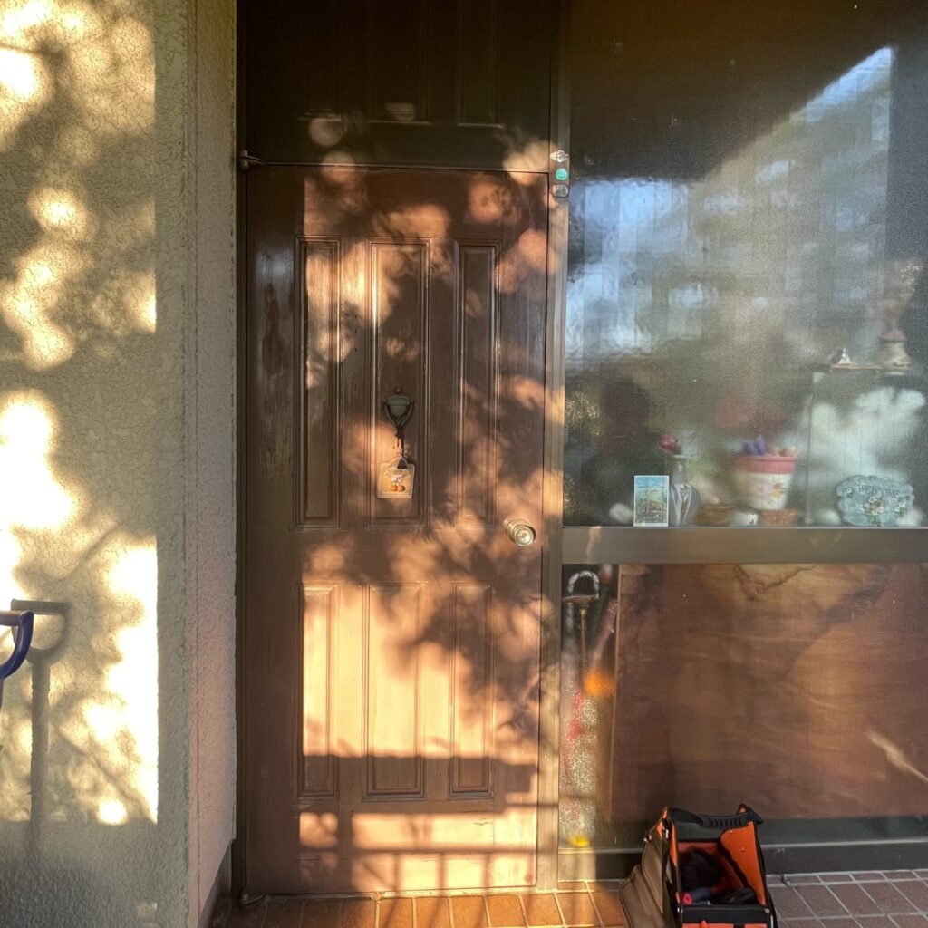 お出掛けの際、以前より調子のよくなかった玄関ドアが開け閉め出来なくなってしまった。
