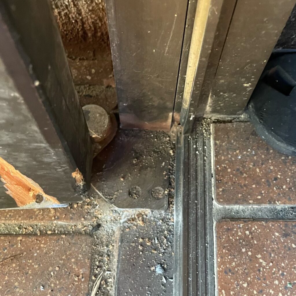 応急処置として蝶番取り付け部の調整を行い、何とか開け閉めが出来るようになりました。